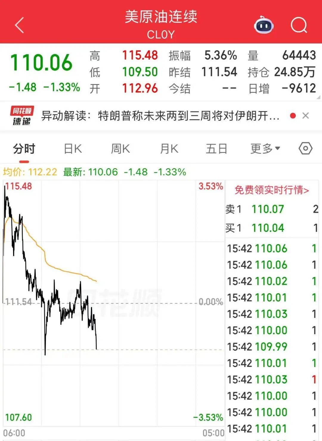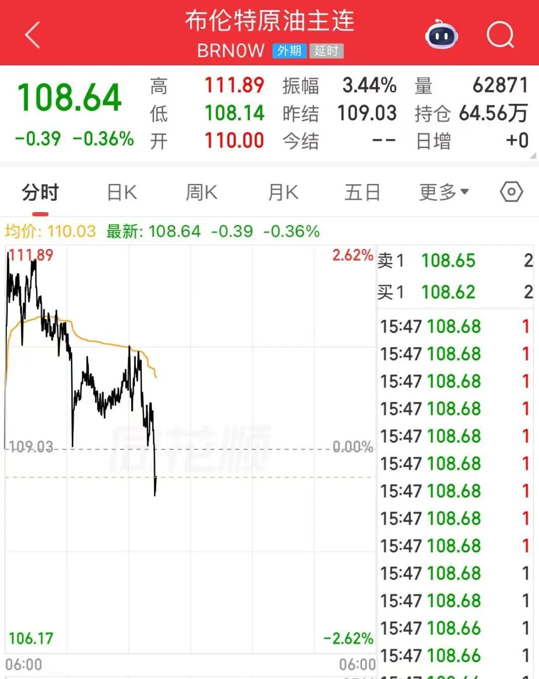 国外原油下落,布油、好意思油价钱跳水。据洲际往还所(ICE)数据清晰,近月西德克萨斯中质原油(WTI)期货进一步扩大跌幅,最新报每桶109.10好意思元,跌幅2.2%。