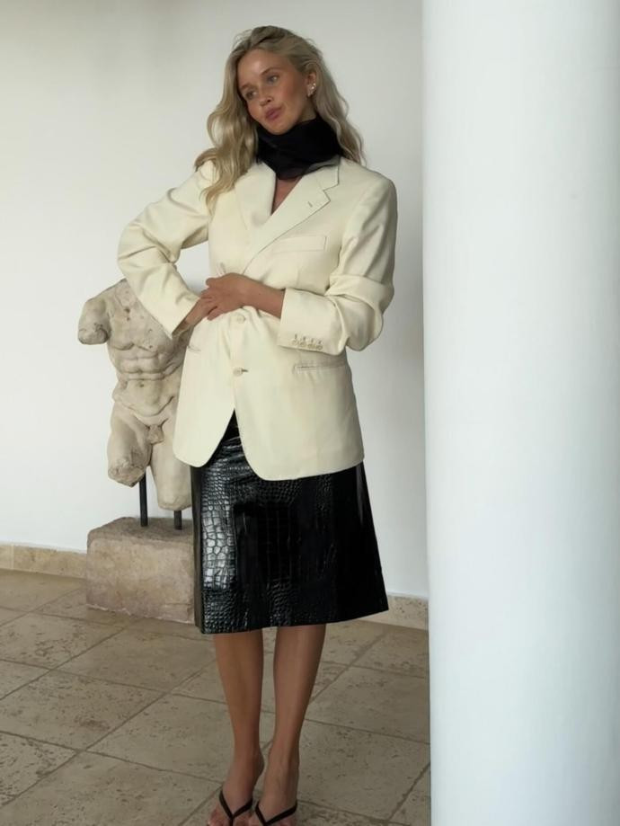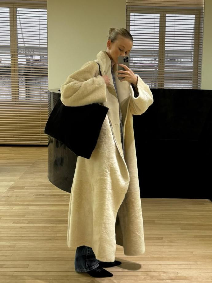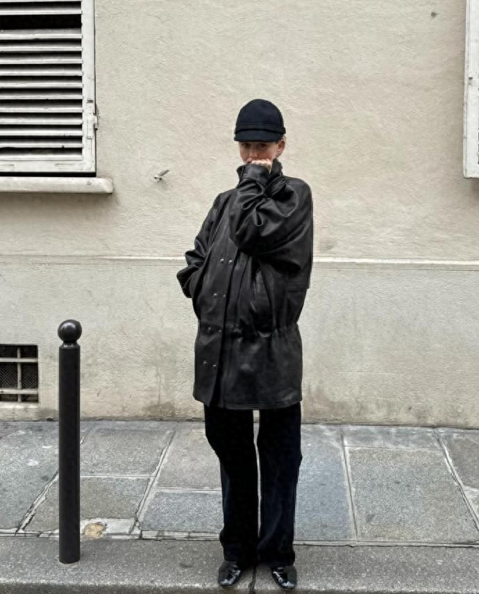 今天T爷给寰宇先容的是来自丹麦ins前卫博主josefinehj,她的穿搭以黑白米色等低有余色调为中枢,看似是浮浅的颜色堆砌,实则是对材质、剪裁与细节的精确把控,每一套造型王人透着高档且毒害的质感。她的开篇造型便展现出极简目的的精髓,玄色皮质廓形外衣搭配同色系长裤与皮鞋,头戴玄色真挚帽,从简的黑调造型中,皮质的硬朗质感与宽松廓形酿成均衡,斑驳的浅墙布景更衬出造型的高档感,圆善证据了 “低有余色调是高档感的底色”。