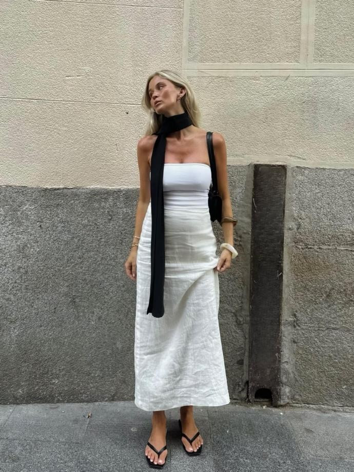 岂论是白色衬衫搭配白色长裤的极简 all white 造型,头戴白色头巾搭配玄色单肩包,崭新又利落;还是白色抹胸长裙搭配玄色长领巾,从简白与黑的组合中,领巾的头绪感晋升造型雅致度,josefinehj 恒久信守着 “从简至上,细节为王” 的穿搭原则。她的造型从毋庸复杂缠绵堆砌,而是通过精确的颜色搭配、优质的材质采用与利落的剪裁,让每一套穿搭王人适配平日通勤、街头出行等多种场景。她用巨额造型证据,极简穿搭的精髓从来不是浮浅的颜色堆砌,而是对证感的把控、对细节的谨慎,以及那份平稳郑重的穿搭气派,这也恰是她能成为全球前卫心疼者穿搭灵感的中枢原因。