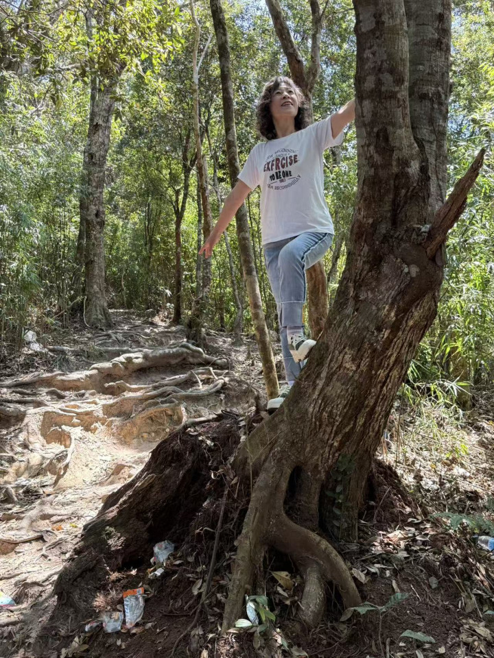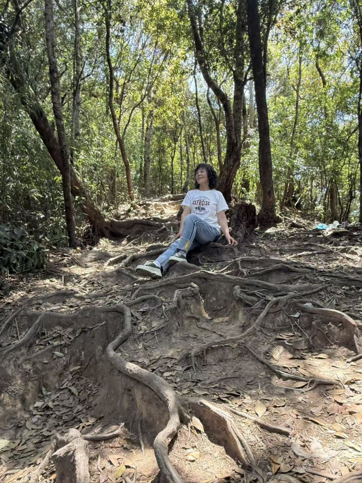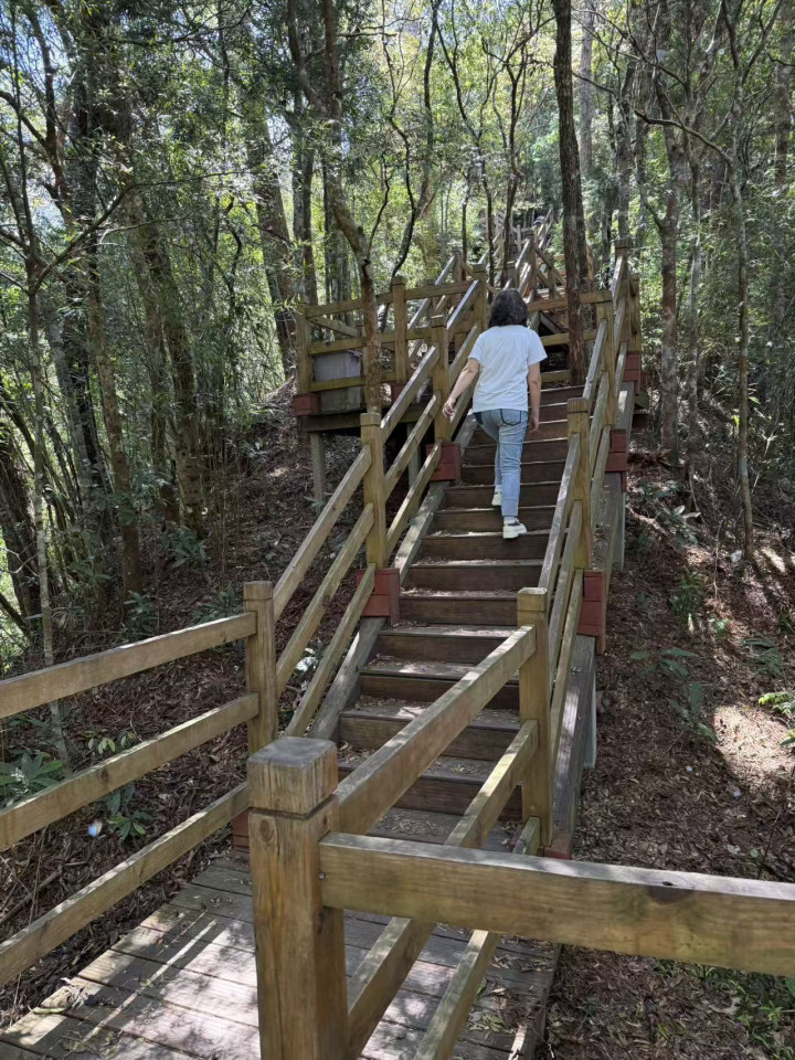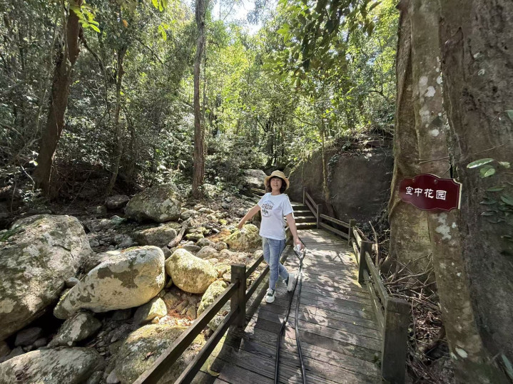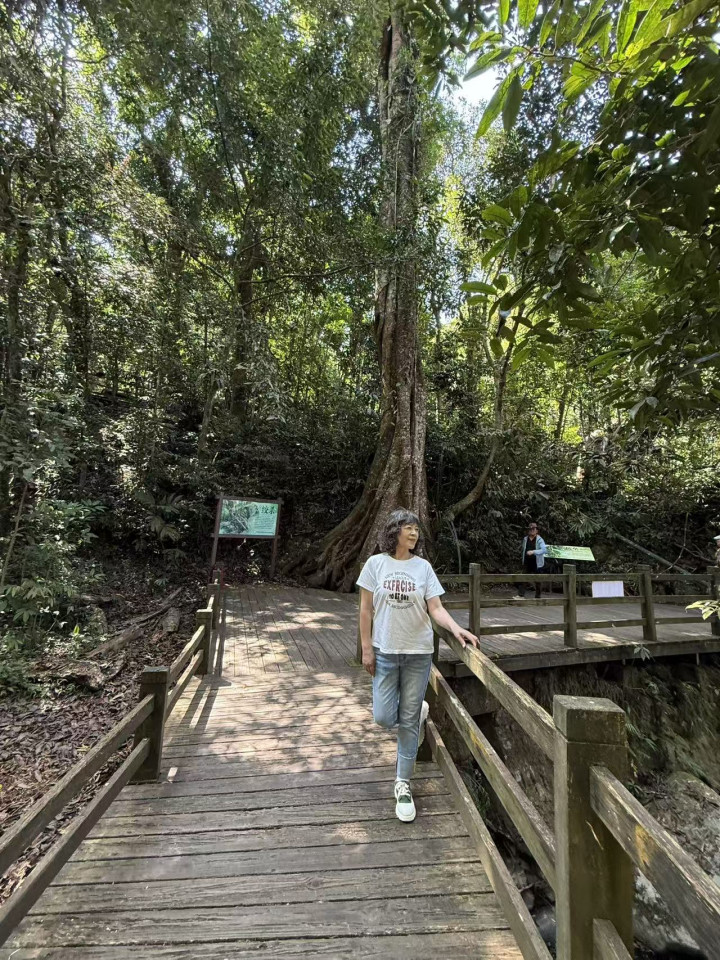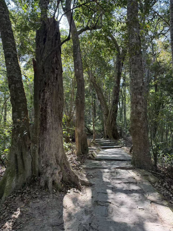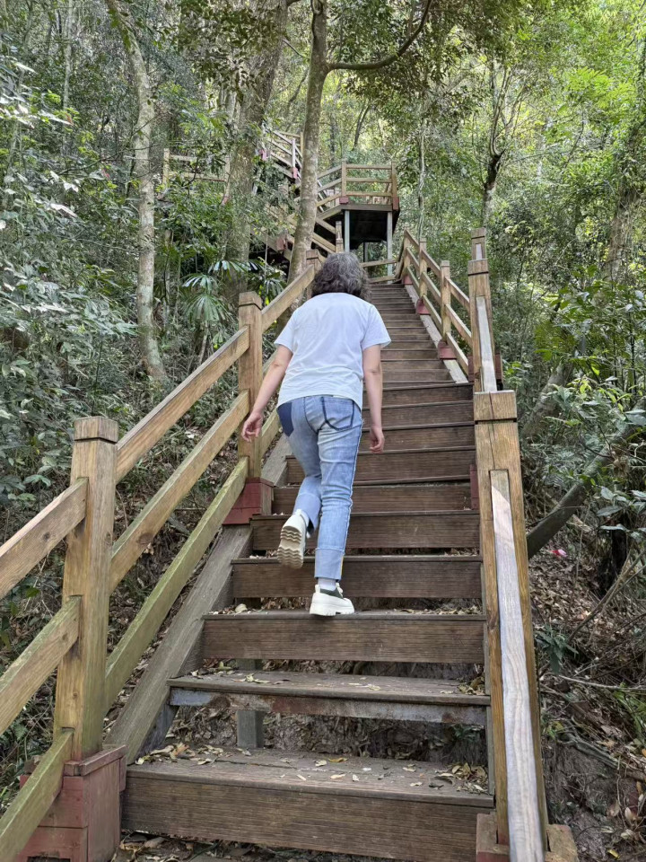 过了仙女潭,栈谈渐渐陡了起来。树木由荒芜变得兴盛,耸入云霄的热带雨林更仆难尽,阳光只能从叶隙间漏下几点碎金,在石阶上高出醒目。空气湿气而温热,带着腐叶和土壤的气味,混着不闻明野花的清香。我大口呼吸着这清冽的空气,仿佛每一口齐是大当然的馈遗。偶尔有鸟鸣从林深处传来,婉转悠长,却只闻其声,不见其形,更增添了几分苦衷。
