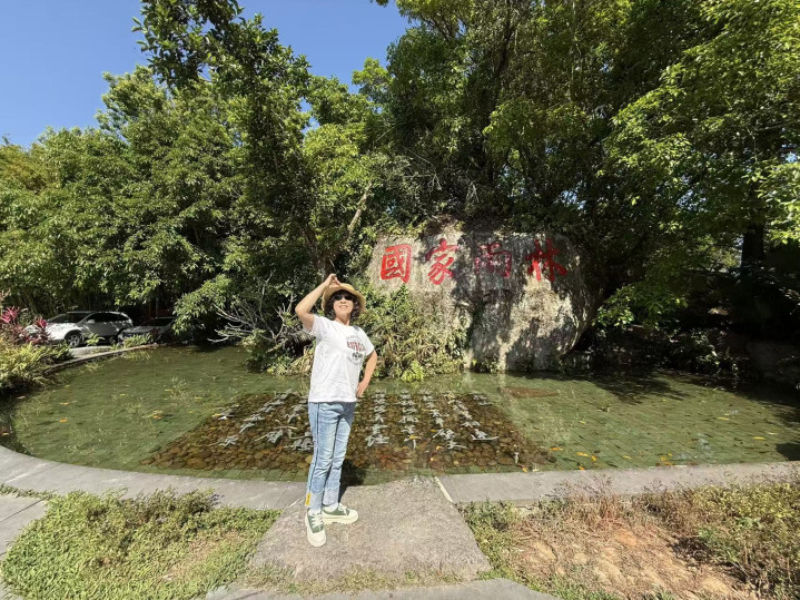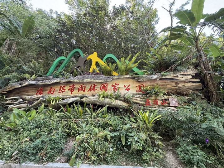 到了景区进口,一块巨石上刻着“海南热带雨林国度公园”的字样。
