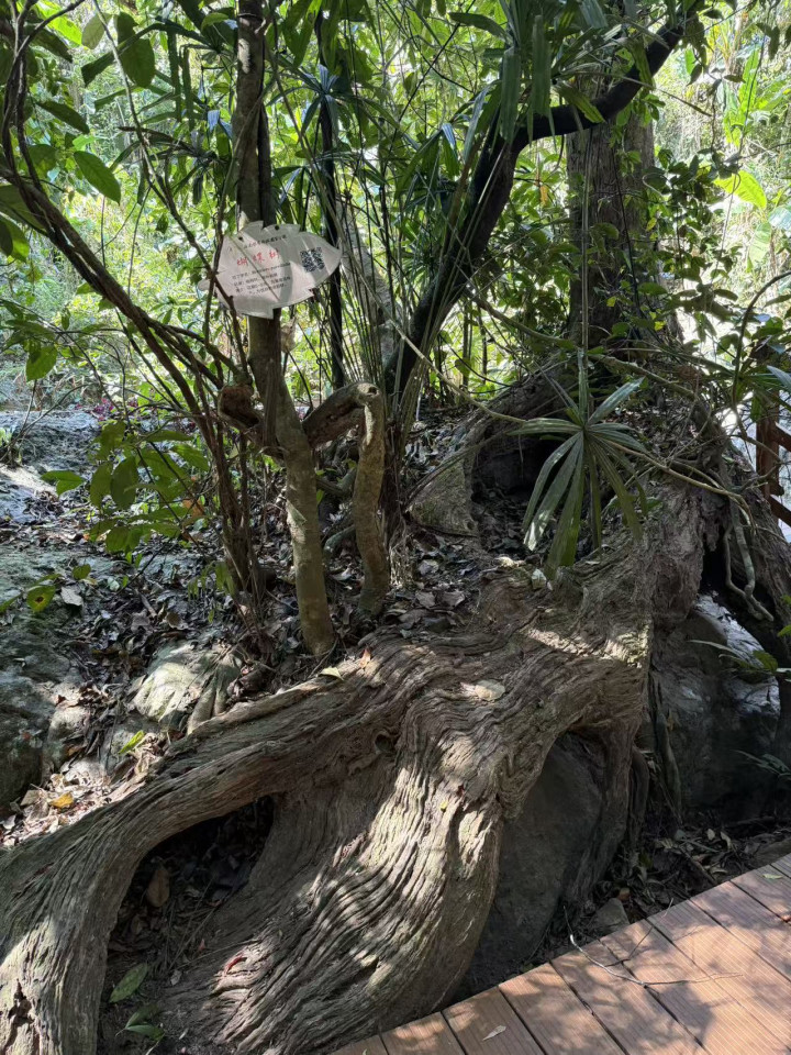 忽然看见一处奇瞻念——“根抱石”。一块巨石被粗壮的树根牢牢缠绕,像被巨东谈主的手掌攥住了一般。看了附近的先容才知谈,原是种子落入石缝,为了糊口,根系握住向四周延迟,积少成多,竟将石头抱了个严密。生命的果决,在这一刻不言自明。我久久伫立,看着那树根与石头形影相随的奇景,心中生出一种无言的感动——这不恰是生命与气运反抗的写真么?明知前路是石,却专爱向石中生;明知无从选拔,却专爱在弗成能中开出花来。