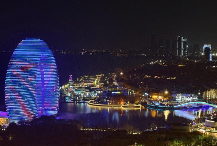 太湖月亮湾,这是一个“土豪景点”,也被誉为“马桶盖景点”,源于喜来登温泉度假旅舍(“月亮旅舍”),高100米,夜间灯光秀与湖面交相照映,被称作“太湖明珠”,可来不雅赏灯光秀(18:00-22:00,季节息争),还能住宿其中。