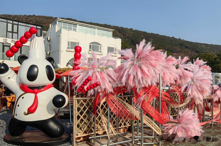 坎上村,一个网红小村庄,靠山面湖,惬心崴蕤,整个一大片杂沓有致的白色确立,有餐厅有茶舍,坐在那里望着浩渺的太湖水,朦胧间仿佛穿到了爱琴海中的圣托里尼。