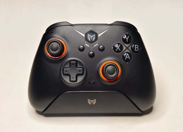 标配磁吸面盖、替换摇杆 / 十字键及充电底座,营救六轴体感与宏编程。操控精确度够用,振动反馈档次一般,万古期握持偏宽,小手需顺应。