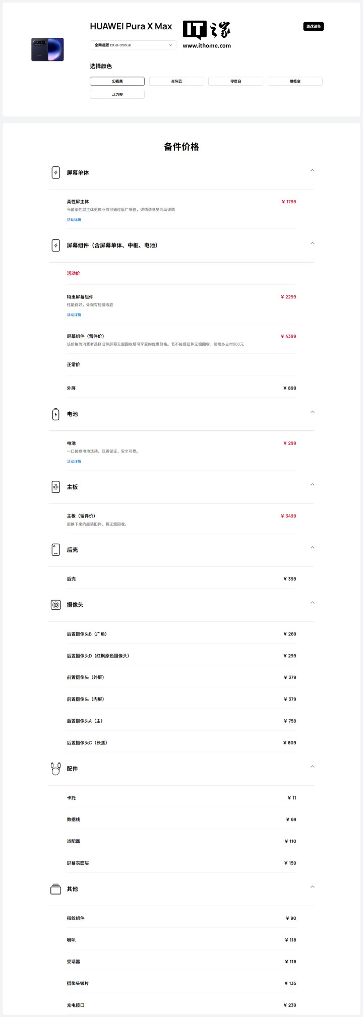 b体育app 华为 Pura X Max 横阔折机备件价钱曝光, 屏幕组件留件价 4399 元